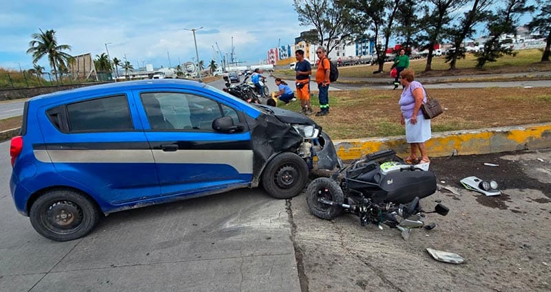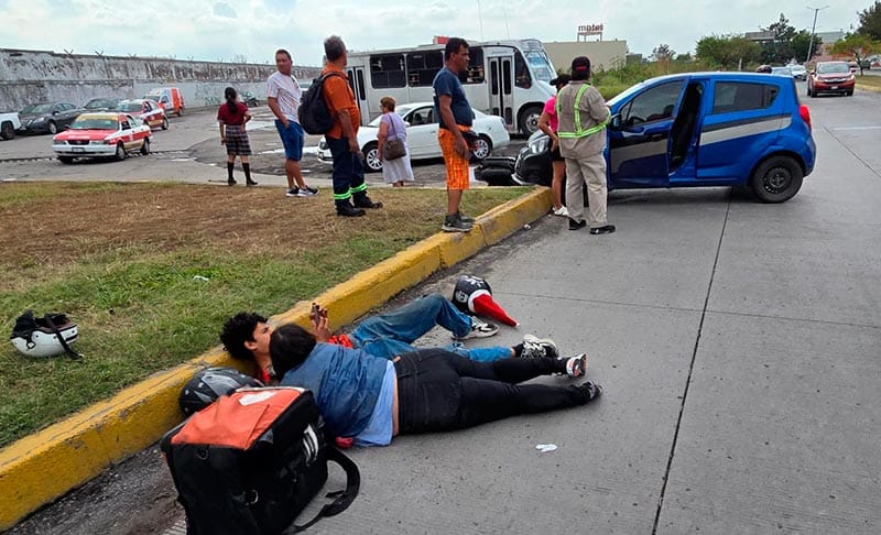 A la altura de la colonia Manuel Contreras, al norte de la ciudad de Veracruz, un joven repartidor y su pareja, en una motoneta, fueron impactados por un vehículo, quedando con varias lesiones y provocando la presencia de los cuerpos de emergencia.