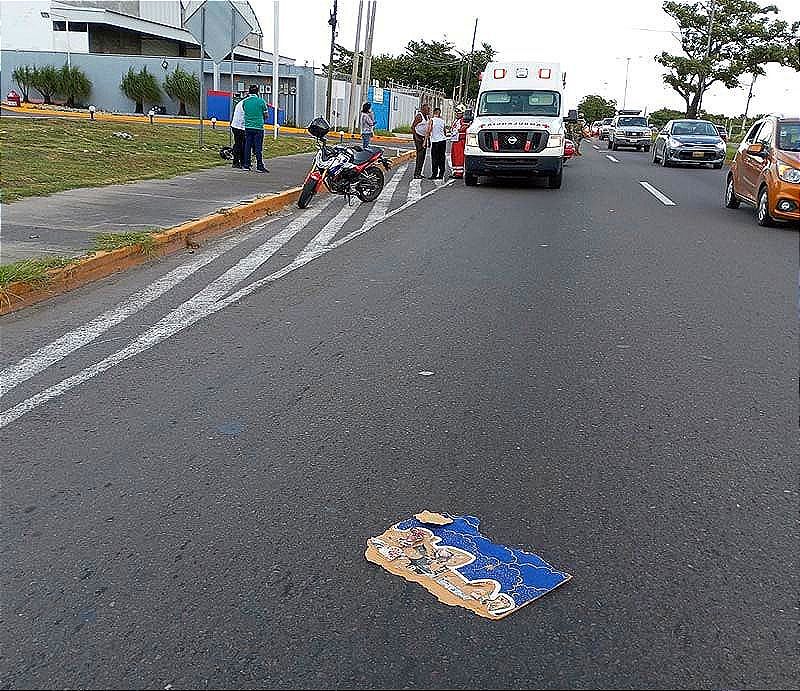 En la carretera federal Veracruz-Xalapa, a la altura de la colonia Campestre, en la ciudad de Veracruz, una pareja en una motocicleta terminó derrapando tras ser golpeados por un pedazo de cartón durante el fin de semana.
