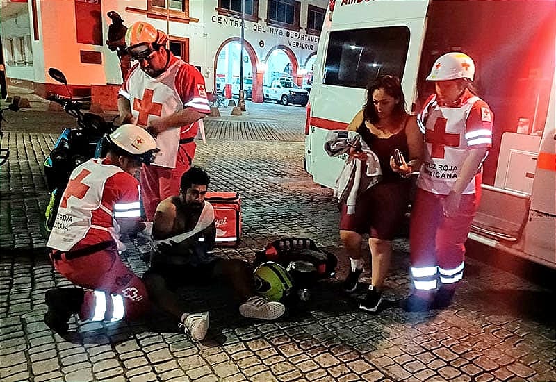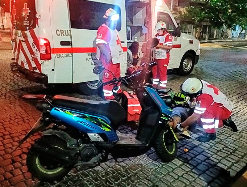En céntricas calles de la ciudad de Veracruz, dos repartidores de la empresa Didi, derraparon en su motocicleta, provocándose lesiones y movilizando a los cuerpos de emergencia, quedando internados en el hospital.