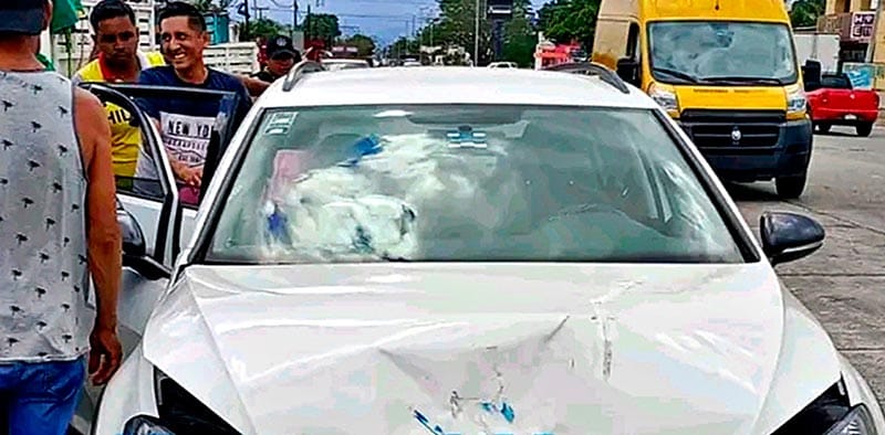 Éste accidente sucedió por la tarde de ayer jueves, en los momentos que el conductor de un coche marca Volkswagen, tipo Jetta, color blanco, con placas YTN-452-B del estado, se desplazaba sobre la carpeta de rodamiento antes mencionada.