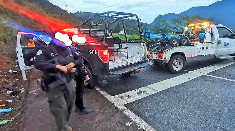 Se conoce que el conductor de la patrulla de la Fuerza Civil adscrita a la SSP, de color verde y doble cabina, perdió el control debido al presunto acceso de velocidad en que viajaba, derrapó, se salió de la carpeta de rodamiento y volcó sobre el carril de baja, el acotamiento, la cuneta y un montículo de tierra.