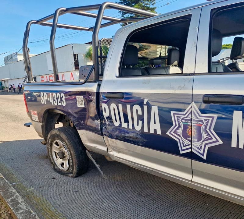 El choque en ángulo se suscitó en la carretera federal 150 Córdoba-Boca del Río, cuando una unidad de la empresa de seguridad privada Transportes Lock, con número económico 497, impactó contra una patrulla Dodge Ram doble cabina de la corporación municipal, identificada con el número económico SP-4323 y con base en el Mando Único, del municipio cordobés.