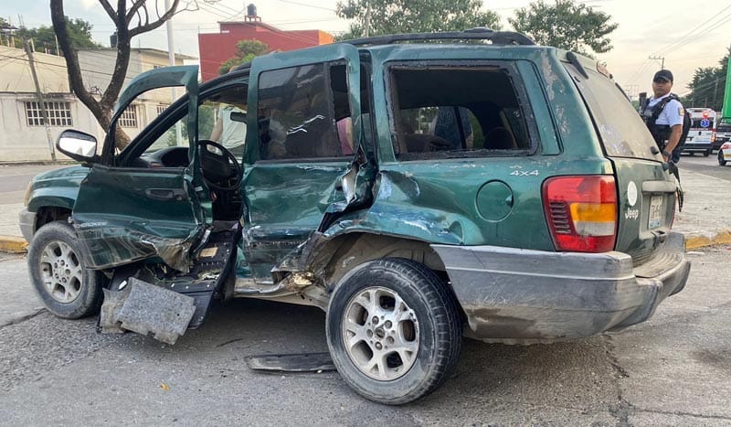 El incidente ocurrió en sobre el bulevar Adolfo Ruiz Cortines, donde una camioneta Grand Cherokee de color verde no hizo alto total al llegar a la citada arteria vial y provocó que la unidad oficial se estrellara sobre su costado izquierdo.
