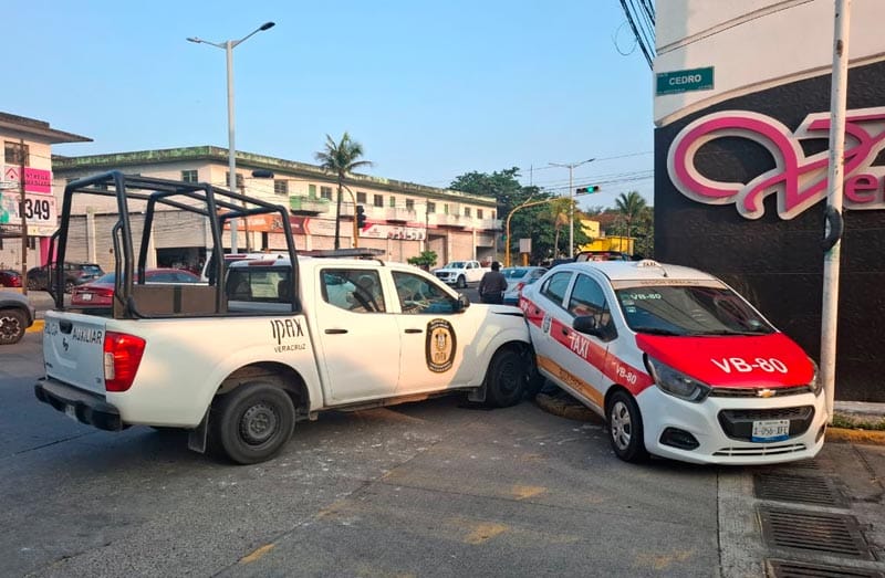 El incidente ocurrió cuando el taxi Chevrolet Beat, con placas A056XFC y número económico VB-80, conducido por Francisco Javier Herrera Carlin, intentaba incorporarse desde la calle Cedro.