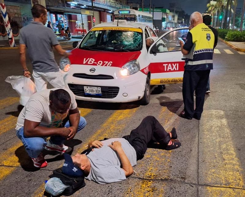 En céntricas calles de la ciudad de Veracruz hubo un accidente, donde un peatón identificado como Miguel Ángel N., resultó lesionado luego de ser atropellado por el taxi con número económico 976.