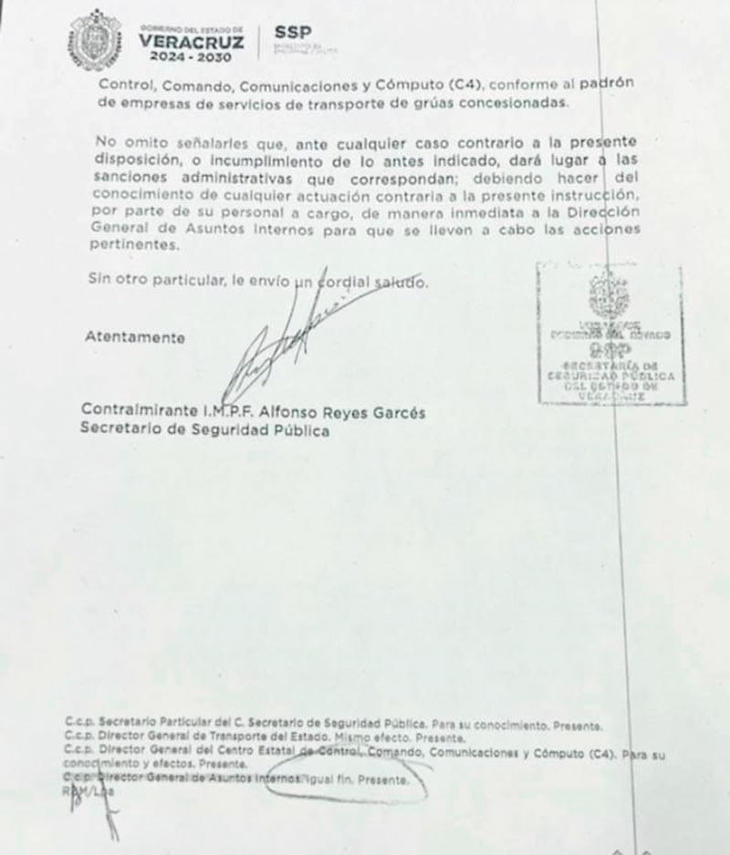 El Secretario de Seguridad Pública de Veracruz, Alfonso Reyes Garcés, ha instruido al personal operativo de la institución, especialmente de Tránsito y Seguridad Vial, para que se abstengan de solicitar el servicio de grúa cuando no sea necesario.