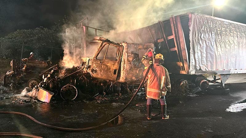 Operadores de la línea de emergencias 911 reportaron dos camiones de carga en llamas cerca de la autopista La Tinaja-Isla, kilómetro 84+000, muy cerca de la caseta de cobro de Cosamaloapan.
