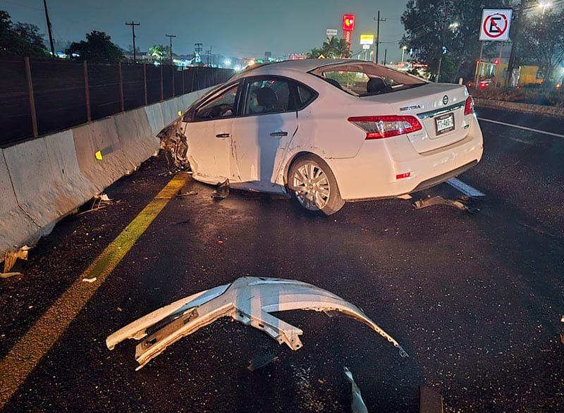 Esto se dio la noche del viernes en la citada autopista en el sentido de Cardel a Veracruz, donde iba un automóvil, tipo Sentra, de color blanco, guiado por una mujer tras perder el control, pasar por una curva y estrellarse contra el muro de contención.