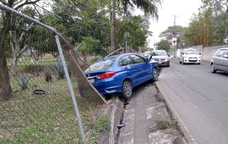 La conductora perdió el control, resultando en una colisión contra un poste de concreto de la Comisión Federal de Electricidad (CFE) y una cerca de malla ciclónica.