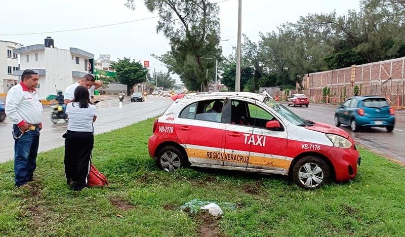 El taxi impactó contra la banqueta del camellón y luego giró, quedando volcado sobre uno de sus costados.