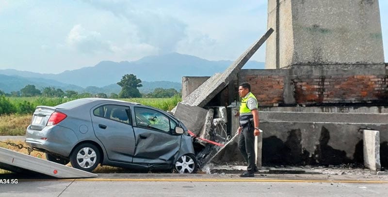 Al salir del camino chocó de manera aparatosa contra la base de concreto del Obelisco Solidaridad, quedando el automóvil con el frente desbaratado y en el asiento del conductor, inconsciente, el empresario cordobés.