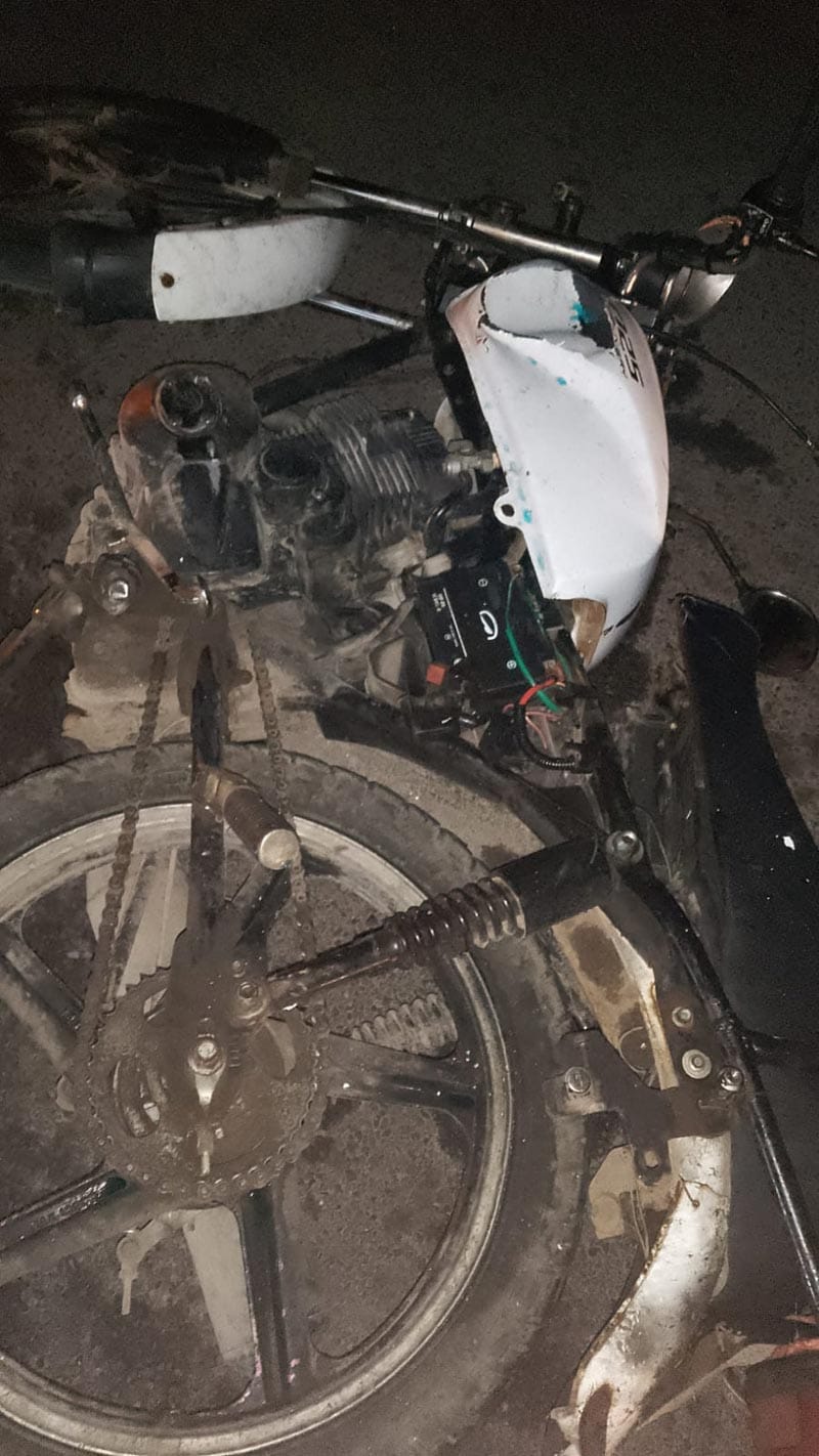El impacto fue brutal que los motociclistas quedaron uno sobre la carpeta de rodamiento y el otro en la melaza.