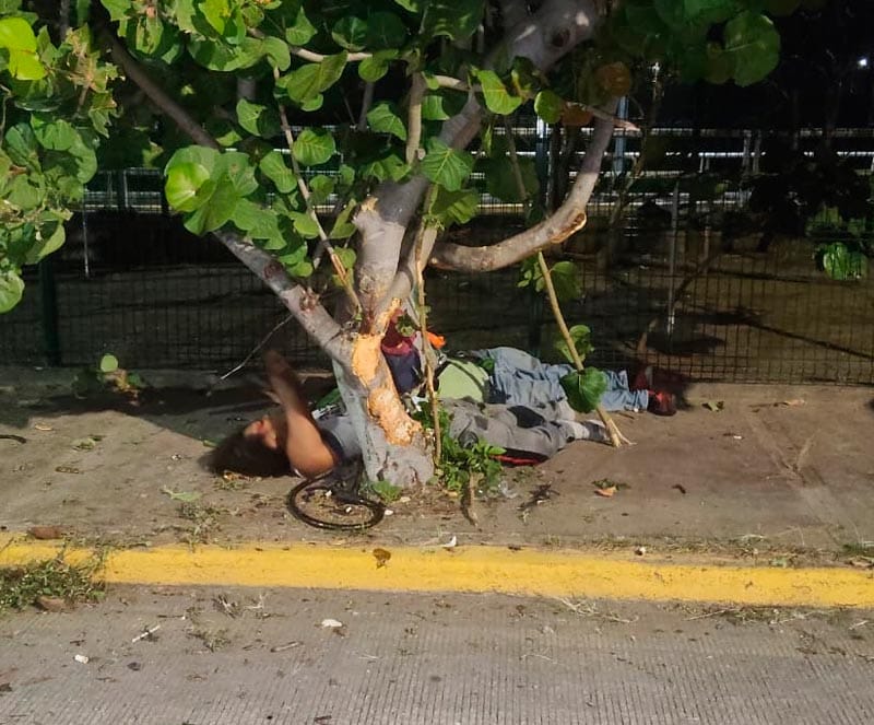Debido al fuerte choque ambos quedaron tendidos con lesiones de gravedad, sobre la banqueta a la altura del Vivero de la ASIPONA.