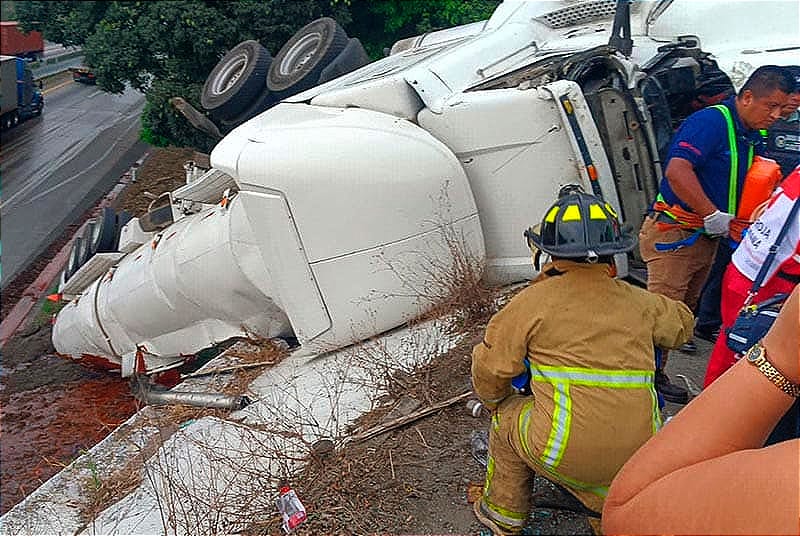 El conductor del tráiler Kenworth Kenmex de color blanco, con número económico 23, razón social "Transportadora Estrella" y placas del Servicio Público Federal, que jalaba una pipa marcada con el número económico 125, de color blanco y cargada con 30 mil litros de melaza, perdió el control durante el ascenso, se salió de la carpeta de rodamiento y cayó del puente a una altura de 10 metros aproximadamente.