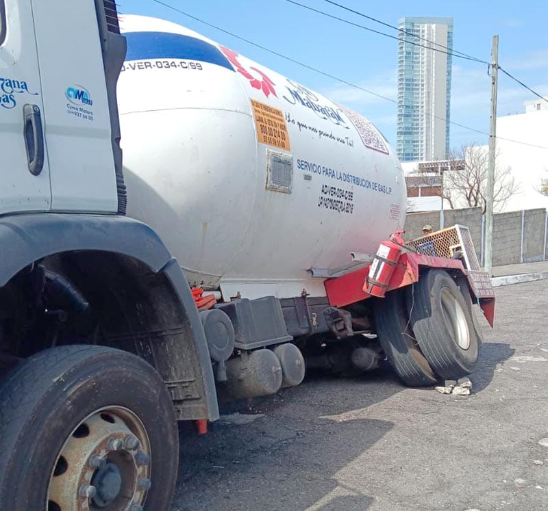 Se trató de una pipa de la empresa Gas Mabarak, marcada con el número económico P-22V, la cual había ingresado para realizar su ruta de distribución en esa zona residencial.
