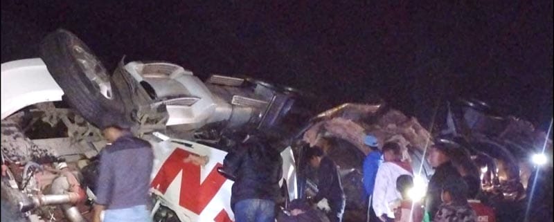 Cruzó hasta el carril contrario y chocó prácticamente de frente contra otro tractocamión que circulaba en dirección opuesta, después un semirremolque cisterna se desprendió y cayó a un barranco.