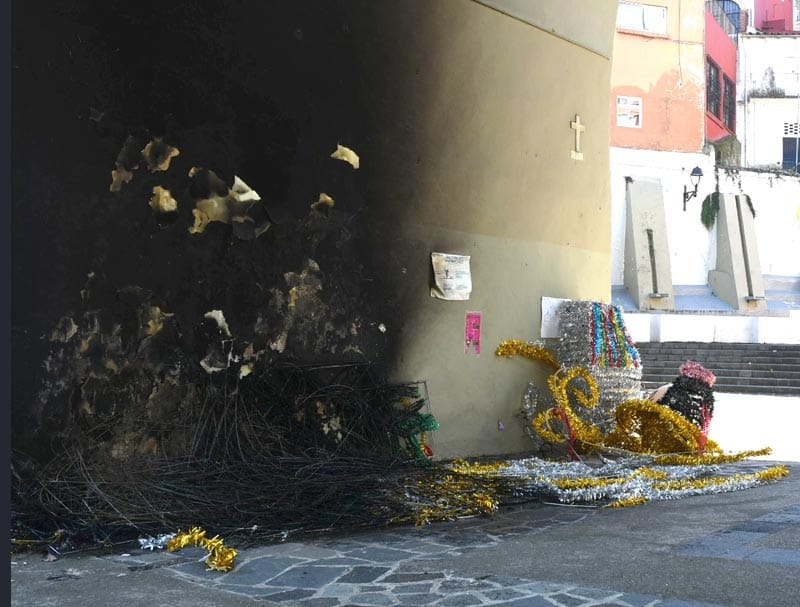 Xalapa, Ver.(AVC).- Un hombre prendió fuego a adornos navideños colocados bajo el puente de Xallitic, en el centro de Xalapa, la tarde de este 2 de enero, lo que provocó la movilización de vecinos y cuerpos de emergencia.