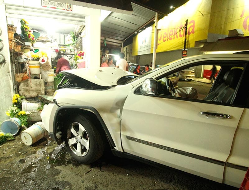 Entonces ella perdió el control de su unidad, se subió a la banqueta y se estrelló contra una florería.