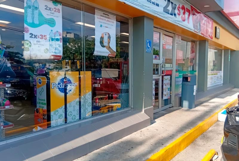 La tranquilidad de la mañana se vio interrumpida cuando una camioneta Toyota RAV4 color gris, placas YGJ-144-A del estado de Veracruz, se estrelló contra los cristales de una tienda Oxxo ubicada en la esquina de Benito Juárez y Hermenegildo Galeana, en pleno centro de Coatzacoalcos.
