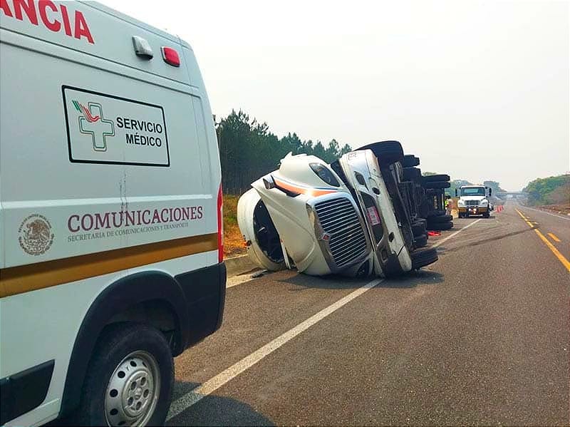 El accidente ocurrió a las 09:55 de la mañana, a la altura del kilómetro 30 de la mencionada autopista, cuando a decir de la conductora, otro tráiler quería rebasarla y la traía casi “pisándole los talones”, por lo que ella optó por hacerse un poco a la orilla para permitirle el paso, pero al haber un desnivel, el peso de la carga le ganó y provocó la volcadura hacia su costado derecho.