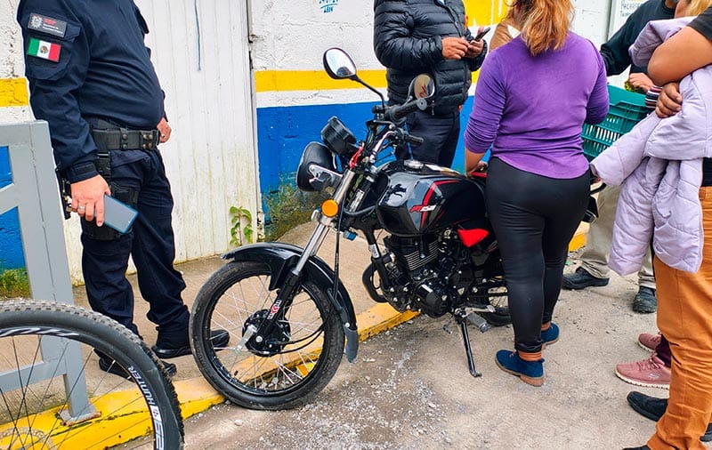 Al medio día del lunes, sobre la Avenida Juárez circulaba una motocicleta de marca Italika FT-125 color blanco, placas 17YVU6, conducida con exceso de velocidad por un oficial del IPAX, cuando ocurrió el accidente.