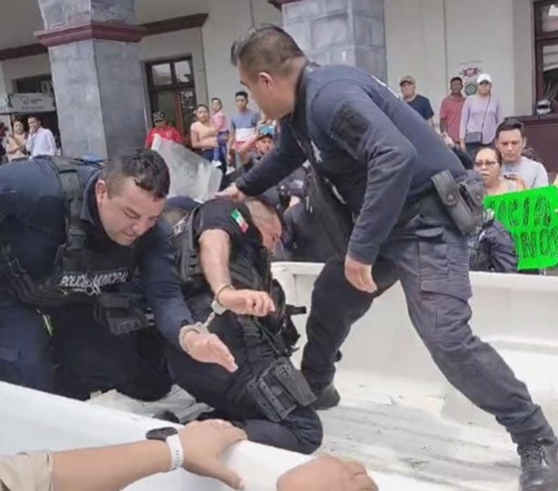 *Nueve policías de San Andrés Tuxtla están detenidos por los hechos violentos durante una protesta de locatarios del mercado “5 de febrero”