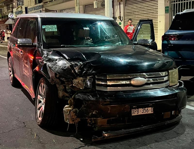Al llegar a la altura de la calle 23 de Noviembre, el automóvil fue impactado por alcance por una camioneta de la marca Ford, tipo Flex, propiedad de una agencia funeraria.