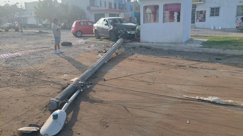 A la altura de la unidad habitacional Lomas de Rio Medio 4, en la ciudad de Veracruz, hubo un percance vial por una posible falla mecánica, luego de perder el control un carro, tipo Bora y colisionar contra poste y una capilla de concreto.