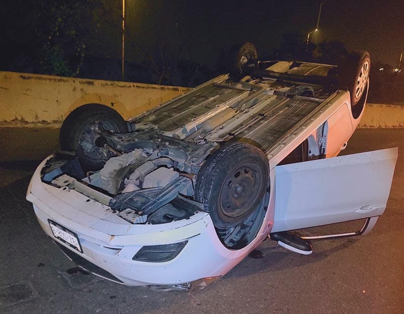 AUTOMOVILISTA QUEDO CON LAS LLANTAS PA’ ARRIBA