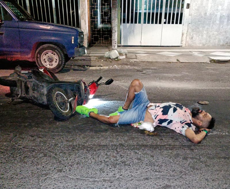 El sujeto al parecer se encontraba en completo estado de ebriedad, y había salido a comprar tacos cuando pasó por un tope, y perdió el control de su unidad, de la marca Italika, derrapando y quedando tendido en el pavimento.