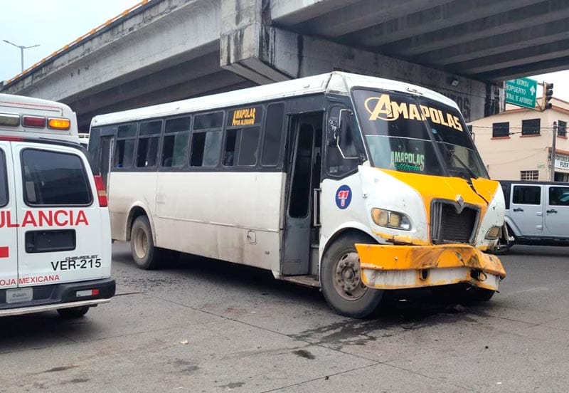 En céntricas calles de la ciudad de Veracruz hubo un percance fuerte de dos camiones del transporte público, dejando como saldo vario lesionados, daños materiales cuantiosos y coas vial.