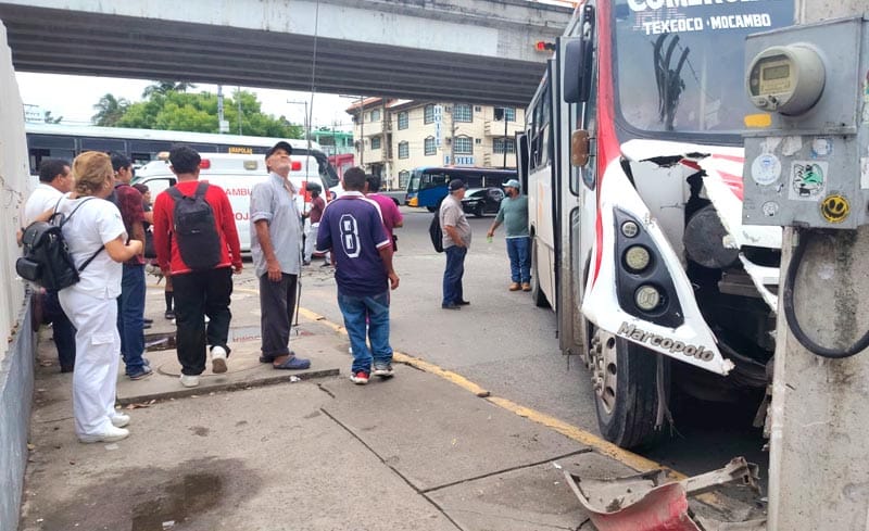 Al llegar a la esquina del auditorio Benito Juárez, lo impactó un urbano, dela ruta Amapolas con económico U-11 y tras la colisión el Comercial salió proyectado hasta estrellarse contra un poste de concreto.