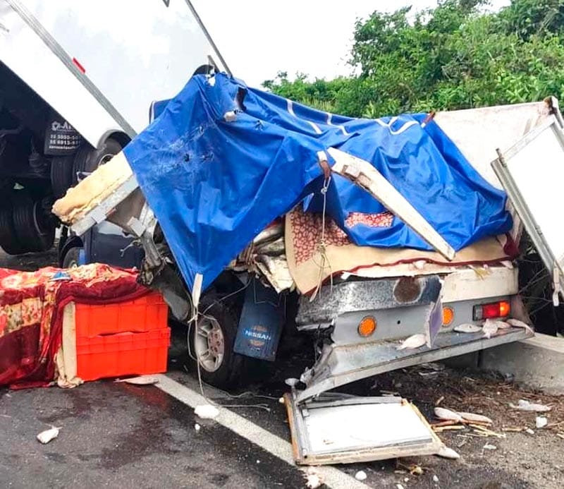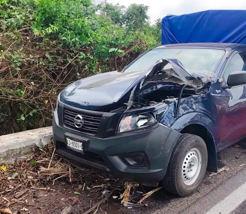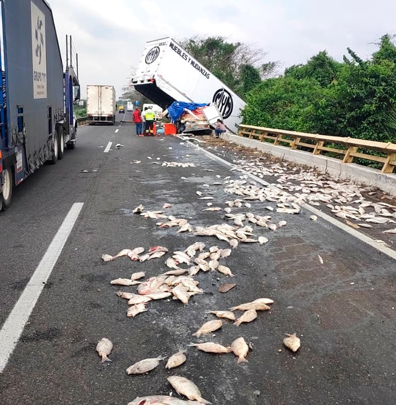 Al medio día, una camioneta Nissan NP300 con carrocería de redilas, con casi una tonelada de pescado, circulaba sobre autopista Cosamaloapan-La Tinaja, cundo a la altura del kilómetro 57+000 fue impactada por un camión de mudanzas.