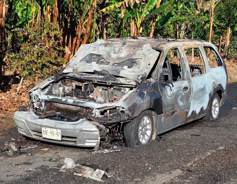 Tlapacoyan, Ver.- Una camioneta familiar terminó reducida a chatarra luego de incendiarse cuando circulaba sobre el camino rural que comunica a las comunidades de Eytepequez y Platanozapan, la tarde de este viernes.