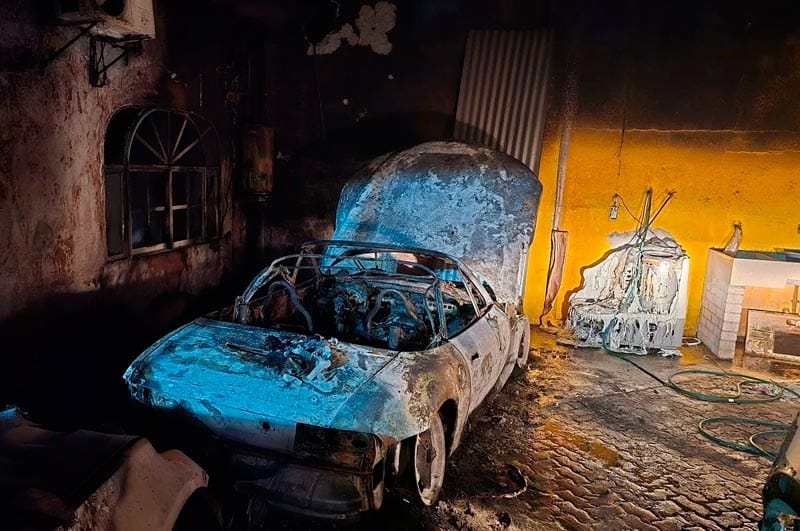 Entre los daños causados por el incendio se encuentran un vehículo BMW Z3, una camioneta Suburban, dos aires acondicionados y varios objetos dentro del garaje.