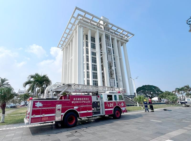 Bomberos de Veracruz rescataron a un hombre que pretendía lanzarse desde una viga del 6º piso del edificio Torre de Pemex, en el paseo del malecón del puerto de Veracruz.