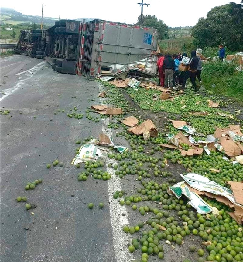 En las Cumbres de Maltrata, sobre autopista Orizaba-Puebla, volcó un tráiler Kenworth cargado con limón y rapiñeros se apoderaron, en minutos, del total de las 17 toneladas del producto que quedó tirado sobre la cuneta.