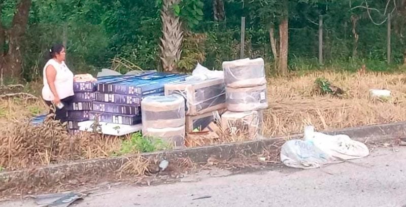 La situación se vio agravada por la presencia de actos de rapiña en el lugar, donde algunos individuos aprovecharon el accidente para saquear la carga del tráiler volcado, siendo captados cuando ya tenían en su poder las pantallas, muebles y colchones.
