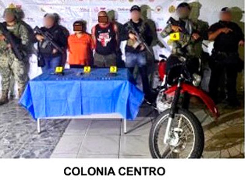 En el primer operativo, en la colonia Centro, se detuvo en flagrancia a María Belem “N” y Víctor Hugo “N”, asegurándole una motocicleta sin placas, una réplica de arma de fuego, polvo blanco granulado como el cristal, hierba seca marihuana y una báscula gramera.