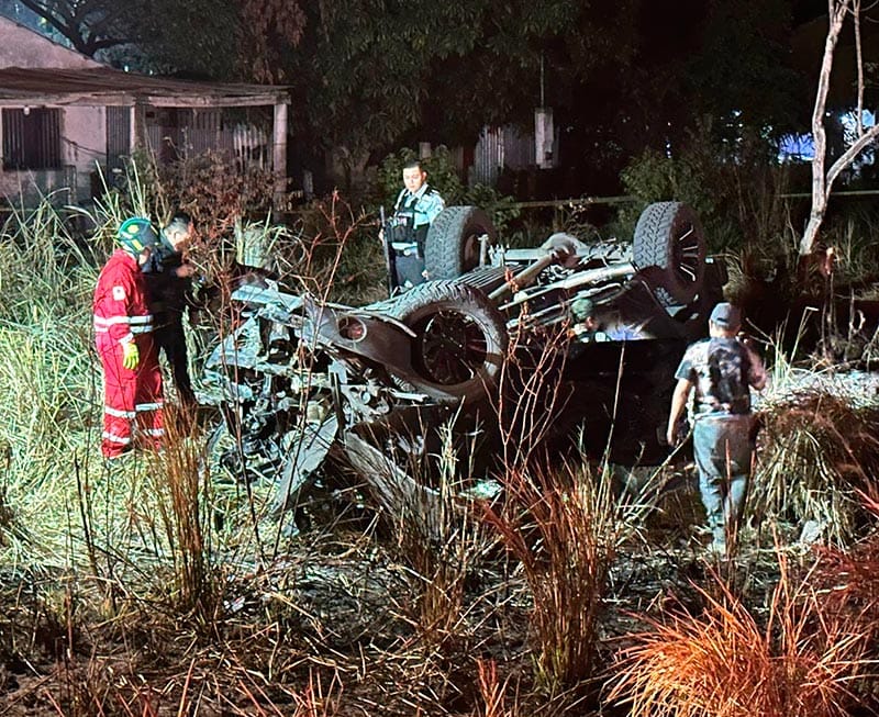 Tras la colisión perdió el control, avanzó varios metros, se salió del camino y volcándose con las llantas arriba y quedando entre la maleza.