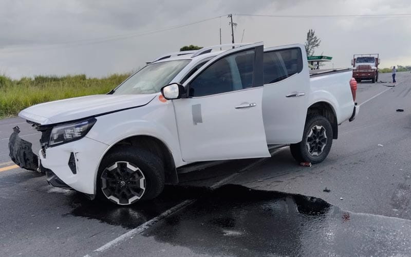 Al acudir, constataron que un automóvil Nissan Sentra color blanco estaba con el frente desbaratado, así como una camioneta Nissan NP300 de color blanco, se trataba de un choque lateral.