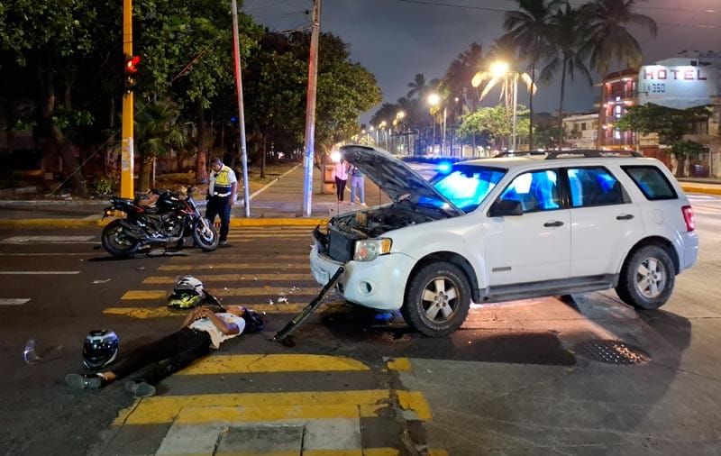 En céntricas calles de la ciudad de Veracruz, hubo un fuerte accidente, entre una camioneta marca Ford y un motociclista, quedando el operador de ésta con severas lesiones.