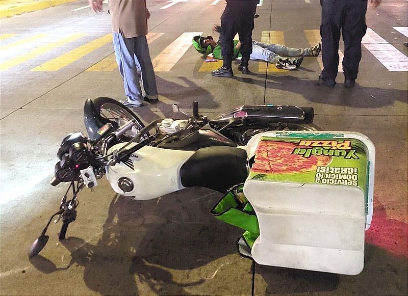 Testigos indican que el motorizado, quien responde al nombre de Cristian de Jesús R. P., de 20 años, iba a bordo de una Honda, de “Yungla Pizza”.