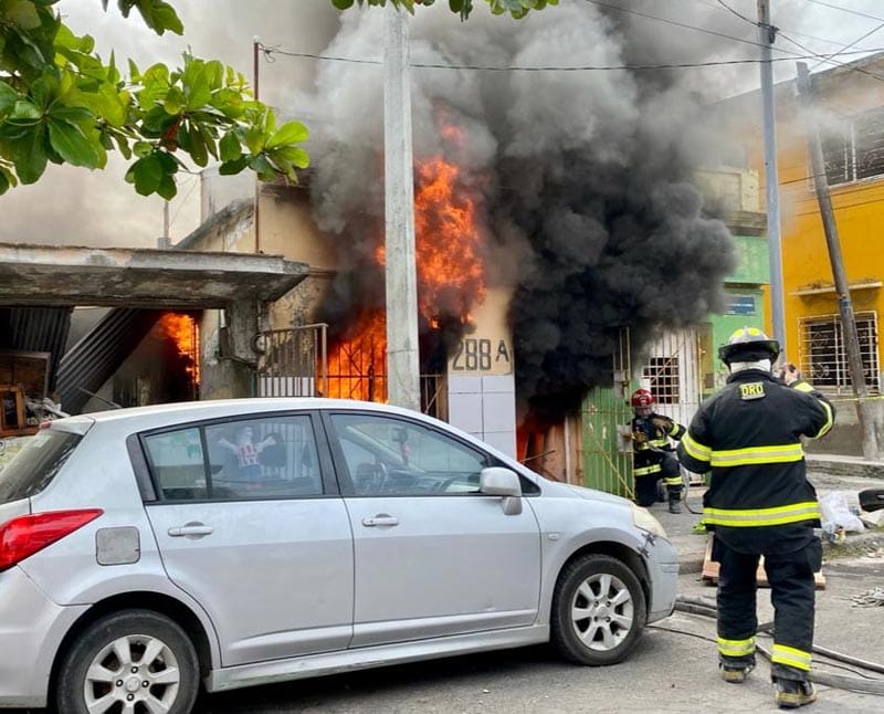 En céntricas calles de la ciudad de Veracruz, un hombre de 64 años fue rescatado por vecinos del incendio de su casa, incluso sacaron a su mascota también.