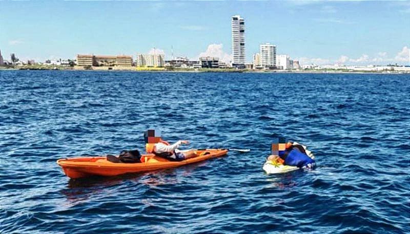Militares en funciones de Autoridad Marítima Nacional rescataron a dos hombres que quedaron a la deriva en kayak cerca de la Isla de Sacrificios, frente al puerto de Veracruz.