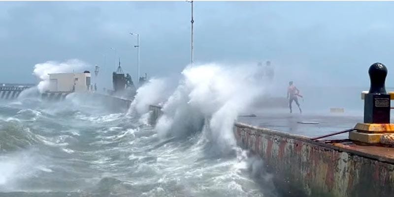Salvavidas de Protección Civil Municipal de Veracruz fueron informados que cuatro personas se encontraban en apuros, atrapados en la caseta de vigilancia del muelle, junto a la escollera, solicitando que se aproximaron.
