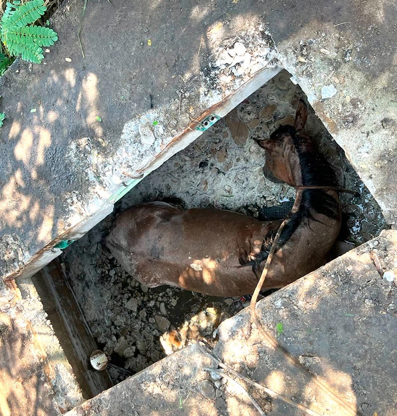 Este viernes, en el fraccionamiento Puente Moreno del municipio de Medellín de Bravo se llevó a cabo el rescate de una yegua llamada Mily, que cayó en un aljibe de más de dos metros de profundidad.
