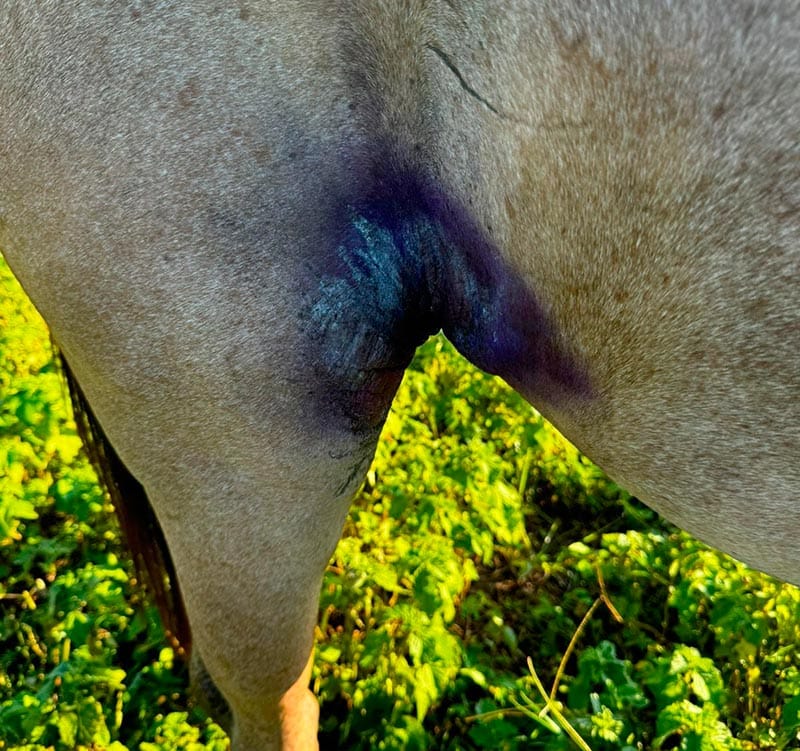 Mily, la yegua accidentada, no sólo sufrió lesiones por la caída, sino que también presentaba un golpe en la cabeza que parecía ser antiguo, indicando un posible historial de maltrato.