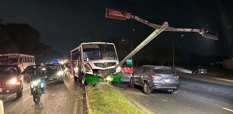 En la carretera federal Veracruz-Xalapa, a la altura de la zona de Las Bajadas, en la ciudad de Veracruz, un autobús de pasajeros de la línea Satea Verde, colisionó contra una luminaria, movilizándose los cuerpos de seguridad, y de la Guardia Nacional.