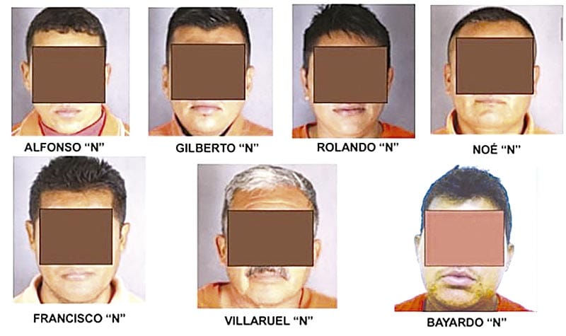 La Fiscalía General del Estado (FGE) informó que fueron sentenciados los ex policías: Alfonso “N”, Gilberto “N”, Rolando “N”, Noé “N”, Francisco “N”, Villaruel “N” y Bayardo “N” a pasar 48 años en prisión.